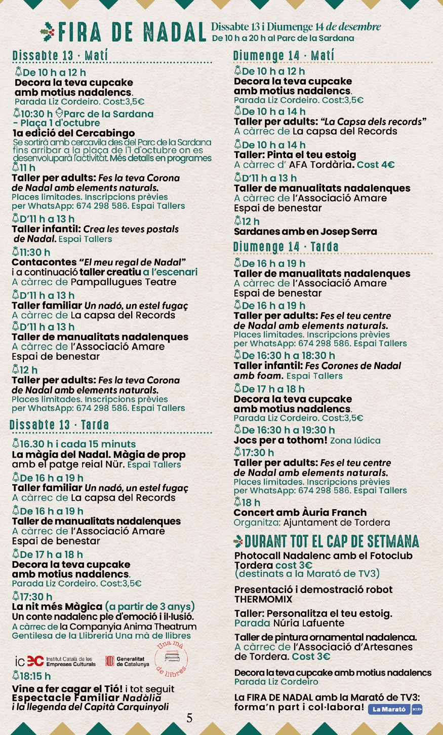 Després de l'èxit de l'any anterior, la Fira de Nadal de Tordera augmenta de dies i estrena una nova ubicació per oferir una immersió nadalenca major. Més decoració i moltíssimes activitats. I és que unes 30 propostes per a tots els públics ompliran el cap de setmana de programació de Fira.