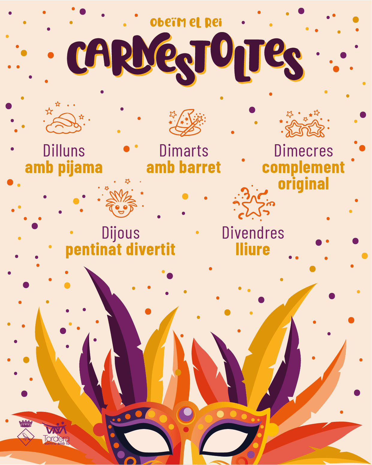 Per tercer any consecutiu, Tordera seguirà de forma conjunta les consignes del Rei Carnestoltes. I és que el personatge extravegant guia a tot el municipi: escoles, entitats, ciutadania, empreses i tothom qui s'hi vulgui adherir. Les consignes per aquest Carnestoltes de Tordera 2026 són les següents: