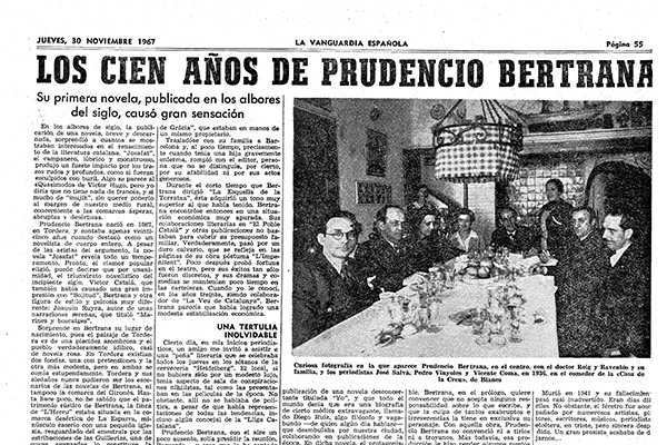 Amb motiu del centenari del naixement de l’escriptor l’any 1967, va tenir lloc una visita col·lectiva als escenaris de les obres bertranianes, guiada per Josep Iglésies, que va començar a la casa del naixement de l’escriptor a Tordera i va comptar amb la presència de la seva filla, Aurora Bertrana.