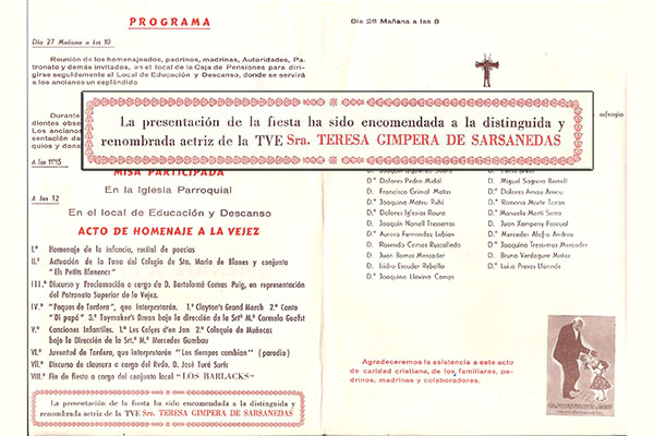 La model i actriu Teresa Gimpera Flaquer va formar part a finals de la dècada de 1960 de la Gauche Divine, un moviment d'intel·lectuals i artistes d'esquerra de Barcelona, del qual en fou considerada la musa. També va obtenir gran popularitat quan fou designada Lady Europa l'any 1969. Ha treballat en prop de noranta pel·lícules del panorama nacional i internacional, que ha compaginat amb la creació d’una escola de models i la publicació de dues obres literàries. La seva trajectòria professional ha estat distingida en nombroses ocasions, entre les quals destaca la Medalla al Treball President Macià de la Generalitat de Catalunya.