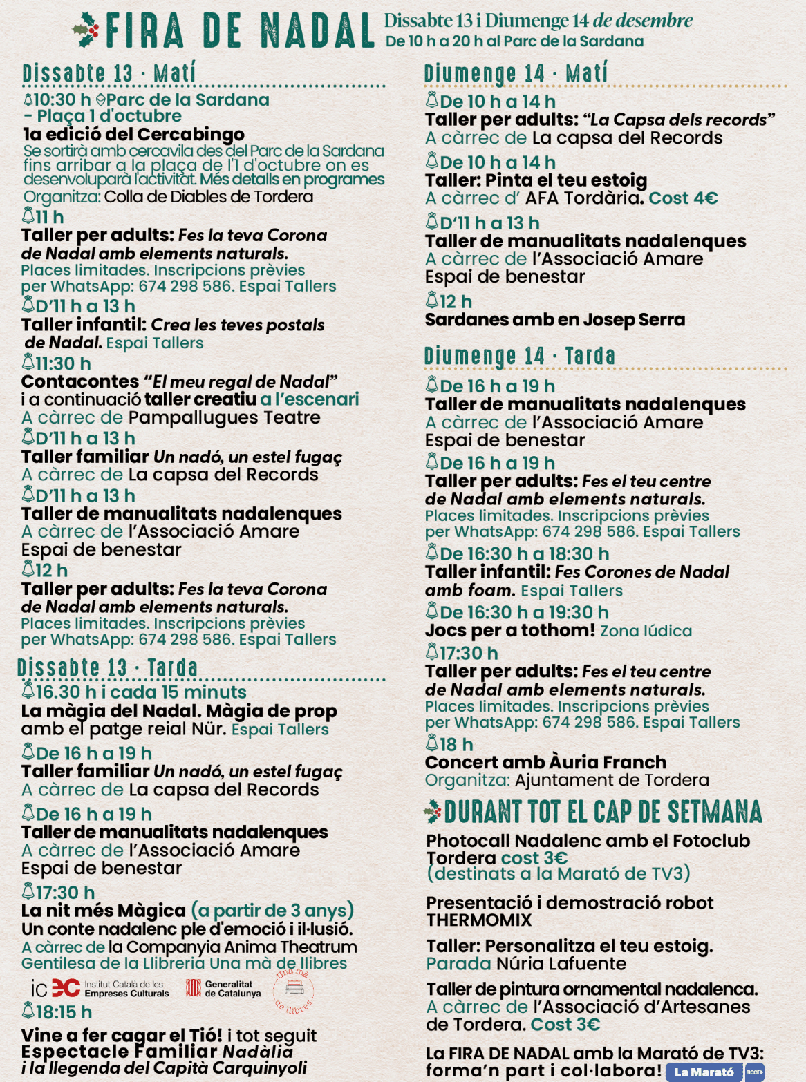 Després de l'èxit de l'any anterior, la Fira de Nadal de Tordera augmenta de dies i estrena una nova ubicació per oferir una immersió nadalenca major. Més decoració i moltíssimes activitats. I és que unes 30 propostes per a tots els públics ompliran el cap de setmana de programació de Fira.