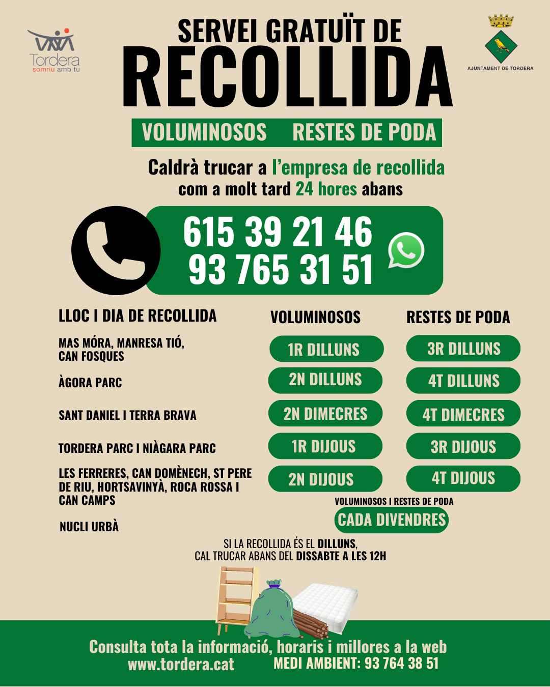 CALENDARI DE LA RECOLLIDA DE TRASTOS, PODA i MOBLES VELLS 2025
